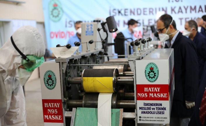Korona virüs ile mücadele kapsamında yoğun çalışmalar yapan İskenderun Mesleki Teknik Anadolu Lisesi idareci ve öğretmenleri, geceli gündüzlü çalışmaları neticesinde cerrahi ve N95 (FFP2) tipi maske makinesi geliştirmeyi başardı.