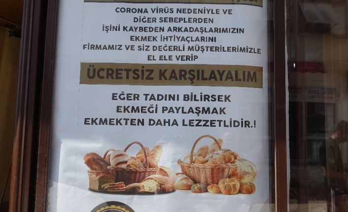 "Korona virüs nedeniyle ve diğer sebeplerden işini kaybeden arkadaşlarımızın ekmek ihtiyacını firmamız ve siz değerli müşterilerimizle el ele verip ücretsiz karşılayalım. Eğer tadını bilirsek, ekmeği paylaşmak, ekmekten daha lezzetlidir."