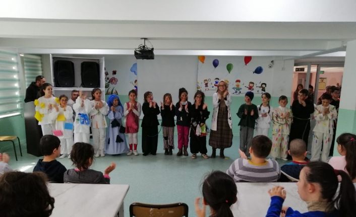 Bursa’nın Mustafakemalpaşa ilçesinde Yunus Emre İlkokulu öğrencileri okulları gezerek oyun sahneliyor.