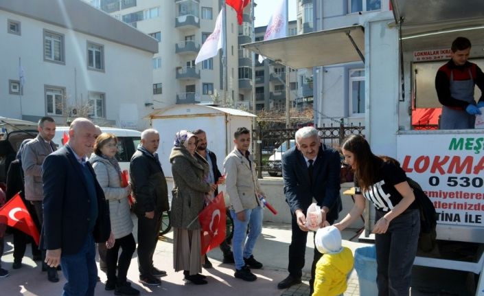 Mudanya Liman Başkanlığı önünde, başkanlık personelinin destekleriyle hazırlanan stantta, lokmanın haricinde Türk bayrağı, su ve meşrubatlar, çevredeki esnaf ve komşuların yanı sıra bulvarda bulunan vatandaşlara ikram edildi. Liman Başkanı Veysel Yaşar, “Şehitlerimizi ve elîm bir uçak kazasında hayatını kaybeden aile dostumun biricik kızı Zeynep Çoşkun’un ruhlarını şad etmek istedik. Mübarek üç ayların içinde bulunduğumuz bu günlerde, başta şehitlerimiz ve bütün ölmüşlerimizin ruhlarını şâd etmek ve kendilerine dualarımızı göndermeye vesile olmaya çalıştık. Ülkemizin son günlerde terörle mücadelesinde güvenlik güçlerimizin başarılı olmasını niyaz ediyoruz. 2 bin kişilik hazırlanan lokma ve ikramlarımızın kısa bir zamanda tükenmesi verilen önemi göstermektedir. İslâm âlemi başta olmak üzere, memleketimizde birlik beraberlik ve huzur dolu günlerin yaşanması için dua ediyoruz. Lokma ikramımıza katılan herkese teşekkür ediyoruz, afiyet ve şifa olsun. Böyle zor günlerde bu tablo gerçekten çok mühim" şeklinde konuştu.