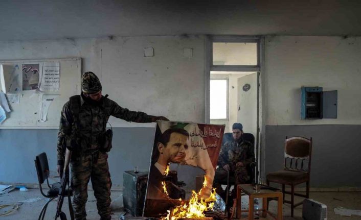 Suriye’deki muhalif askerler, Şam yakınlarında bulunan Kadın Askeri Eğitim Merkezi’nde Esad’a ait izleri yakarak yok ediyor.