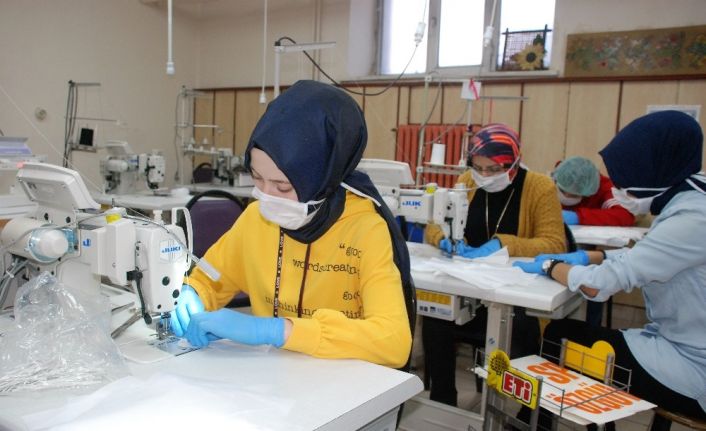 Koronavirüs önlemleri kapsamında Milli Eğitim Bakanlığı tarafından 21 ilde 37 okulda cerrahi maske üretim yapılıyor. Tokat’ta da Mahperi Hatun Mesleki ve Teknik Anadolu Lisesinde gönüllü öğrenci ve öğretmenler tarafından cerrahi ve N95 maske üretimine başladı. Okulun bodrum katında bulunan konferans salonunda maske kumaşları kesilerek dikime hazırlanıyor. Moda tasarım öğrencileri ve öğretmenleri tarafından ise atölyede maskeler dikilerek kullanıma hazır hale getiriliyor. Haftada 25 bin üretilmesi planlanan maskelerin ilk etapta kamu kurum ve kuruluşlarındaki ihtiyacı karşılaması bekleniyor.