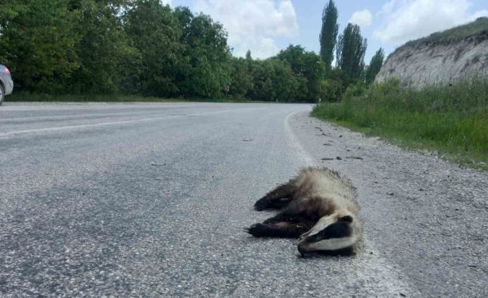Günyüzü ilçesinde nadir görülen porsuk yol kenarında ölü bulundu.