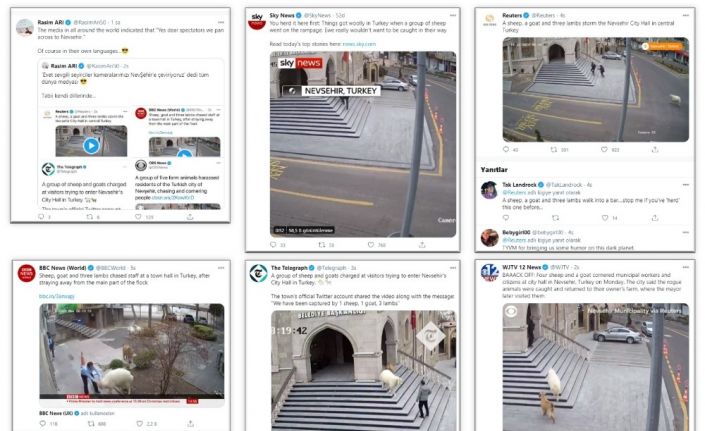 Nevşehir’de sürüden ayrılan 5 küçükbaş hayvanın belediye binasına girmeye çalışması anında ortaya çıkan görüntüler sosyal medyanın yanı sıra ulusal ve dünya basının da geniş yer buldu.