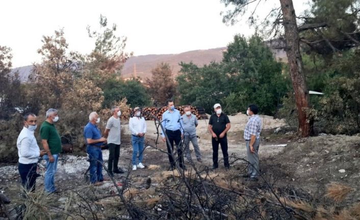 Orman Bölge Müdürlüğü Bursa İşletme Müdürü Nacettin Doğan, Demirci Muhtarı Mehmet Bulut ve mahalle sâkinleriyle birlikte yanan ormanlık alanda incelemelerde bulunan Milletvekili Mustafa Esgin, şunları söyledi: