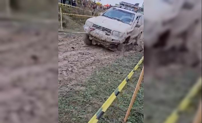 İstanbul Çatalça’da düzenlenen offroad parkurunda unutulmaz anlar yaşandı. Lastiğin jantından çıkan araçlarına rağmen parkuru tamamlayan ekip, izleyenlerden tam not aldı. Araç traktör yardımıyla çekildi.