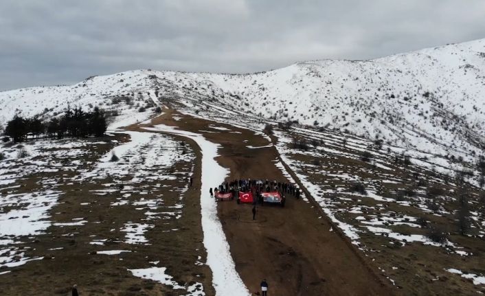 Kırıkkale’de şehitler için saygı yürüyüşü yapan öğrenciler 1744 rakımlı Dinek Dağının zirvesinde Türk bayrağı açıp İstiklal Marşı okudu.