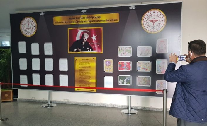 Karabük İl Milli Eğitim Müdürlüğü’ne bağlı ilkokul ve ortaokul öğrencileri, pandemi sürecinde fedakarca çalışan sağlık çalışanlarına moral vermek amacıyla hem mektup yazdı hem de resim çizdi. Sağlık çalışanlarına ahde vefa için öğrencilerin saf ve temiz duygularını dile getirdiği mektup ve resimlerden oluşturulan pano İl Milli Eğitim Müdürlüğü tarafından Karabük Eğitim ve Araştırması’na teslim edildi. Birbirinden güzel resimlerin ve mektupların yer aldığı pano bölümü hastanenin yatan hasta bölümüne konulurken açılışı için tören düzenlendi.