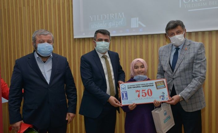 Yıldırım Belediyesi, 24 Kasım Öğretmenler Günü münasebetiyle düzenlendiği şiir okuma yarışmasında dereceye giren öğrencileri ödüllendirdi.