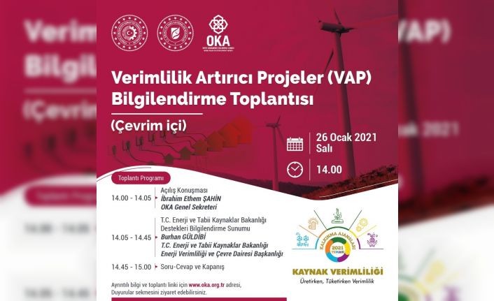 OKA Genel Sekreteri İbrahim Ethem Şahin yaptığı açıklamada, “Enerji verimli ekipman ve sistem kullanımı, onarım, yalıtım, rehabilitasyon ve proses düzenleme gibi yollarla gereksiz enerji kullanımının, atık enerjinin, enerji kayıp ve kaçaklarının önlenmesi, atık enerjinin geri kazanılması konularındaki verimlilik artırıcı iyileştirme çalışmaları başvuruya dahil edilebilir ve bakanlığın uygun görmesi halinde destek alınabilir. Ajansımız Enerji ve Tabii Kaynaklar Bakanlığı’nın Verimlilik Artırıcı Projeler konusundaki desteklerinin bölgedeki işletmelerimiz, kamu kurum ve kuruluşlarımız tarafından daha iyi tanınması için bir bilgilendirme toplantısı organize etmiştir. Enerji ve Tabii Kaynaklar Bakanlığı Enerji Verimliliği ve Çevre Daire Başkanlığı uzmanları tarafından gerçekleştirilecek bilgilendirme sunumu 26 Ocak Salı Günü çevrim içi olarak gerçekleştirilecektir. Toplantı, konuya ilgi duyan tüm tarafların katılımına açıktır” dedi.