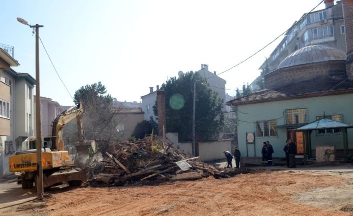 Osmangazi Belediyesi, Maksem Mahallesi’nde yer alan Çukur Camii’nin çevresini açmak adına yürütülen çalışmalar kapsamında cami önünde yer alan 3 binayı kamulaştırarak yıktı.