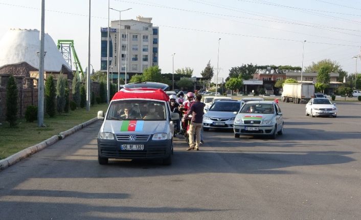 Osmaniye’de Azerbaycan’a destek konvoyu düzenlendi. Masal Parkında başlayan konvoy, Cumhuriyet Meydanında son buldu.