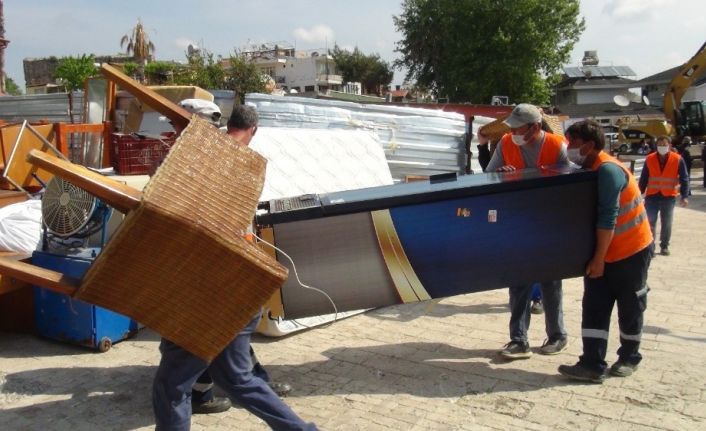 Antalya’nın Manavgat ilçesi Side Mahallesi’nde bir otel, Danıştay kararıyla Manavgat Belediyesi tarafından yıkıldı. Konya Bölge İdare Mahkemesi’ne yürütmeyi durdurma başvurusunda bulunan otel sahibinin belediye tebligatına rağmen boşaltmadığı iş yerindeki eşyalar, belediye çalışanları tarafından dışarı çıkarıldı.