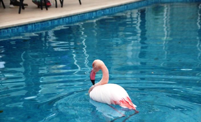 Bodrum semalarından Tuzla sulak alanına giden göçmen kuşu flamingo yaralanınca bir otelin havuzuna düştü. Havuzda flamingo gören vatandaşlar şoke olurken, çalışanlar ise flamingoya gözü gibi bakıyor.