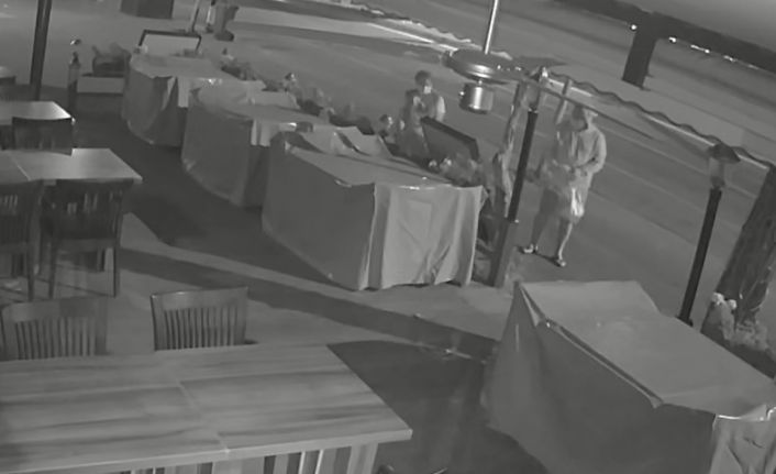 (Özel) Alanya’da restoran önünden çiçek hırsızlığı kamerada