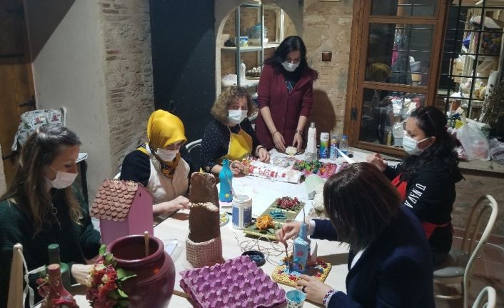 Kursta çok güzel şeyler öğrendiklerini anlatan kursiyer Pınar Silistire ise, “Kursumuzda atık malzemelerin geri dönüşümünün sağlanabildiğini gördük. Çerez kabuklarını boyayarak güzel tablolar yapabileceğimizi öğrendim. Evdeki tüm atıkları değerlendirmeye çalışıyorum, hiçbir şeyi çöpe atmak istemiyor, mutlaka bir yerlerde değerlendirebileceğimi düşünüyorum. Doğaya çıktığımda da atıkları gördüğümde nasıl değerlendirebileceğimin planlarını yapıyorum. Bu beni çok mutlu ediyor, ayrıca ev ekonomisine de yaptığım eserleri satarak katkı sağlamış oluyorum” şeklinde konuştu.