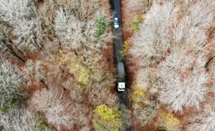 Yeşil ve sarının farklı tonlarının kendine hayran bıraktığı orman, drone ile havadan görüntülendi.