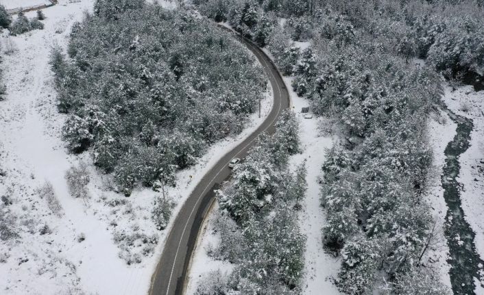 Bursa’da etkili olan kar yağışı sebebiyle Kestel’de oluşan kartpostallık görüntüler, görenleri hayran bıraktı.