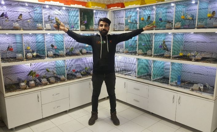 Bitlis’in Tatvan ilçesindeki bir petshop sahibi, evcil kuşları motive etmek için onlara dengbej türküleri dinletiyor.