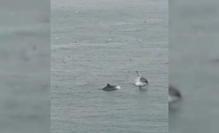 Büyükada’da kar yağışı sonrası kıyıya yakın bir noktada bir araya gelen yunus balıkları denizde oyunlar oynayarak keyifli dakikalar geçirdi. O esnada yanlarına gelen bir kuş sürüsü ise adeta oyunlarına eşlik etti. Yaşanan o anlar ise vatandaşın cep telefonu kamerasına yansıdı.