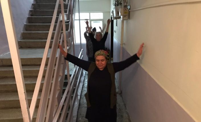 (Özel) "Evde kal" çağrısına uyan komşular binada spor yaptı