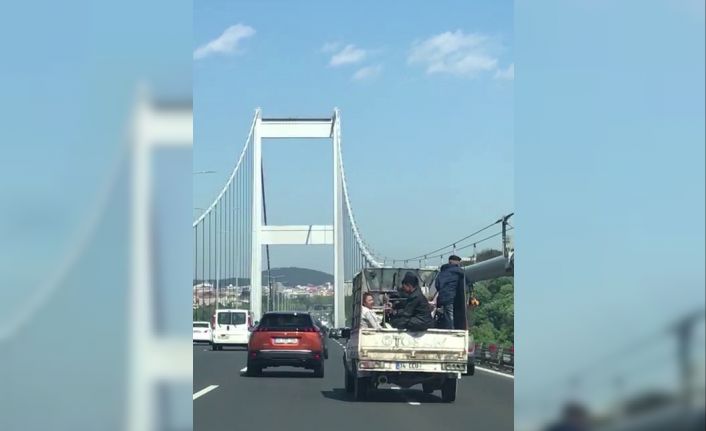 Fatih Sultan Köprüsü (FSM) Ankara istikametinde seyreden bir kamyonetin kasasında 5 çocuk yolculuk etti. Kamyonetin kasasında bulunan çocuklardan bir tanesinin kasanın kenarına oturması yürekleri ağza getirdi. 5 çocuğun yüzlerinde maske olmadığı ve sosyal mesafeye uymadığı görüldü. Köprü üzerinde şerit değiştirerek seyir eden kamyonetin plakasının son rakamlarının silinmiş olması ise dikkat çekti. Kasasında 5 çocuk ile tehlikeye davetiye çıkaran kamyonet sürücüsün duyarsız davranması akıllara durgunluk verdi.