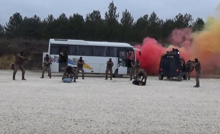Kastamonu Emniyet Müdürlüğüne bağlı özel harekat polisleri, kaçırılan bir minibüse senaryo gereği kurtarma operasyonu düzenledi.