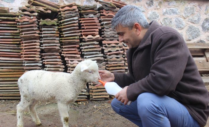Bursa’da annesi ölen kuzu, kendisini biberonla besleyen imamın yanından bir an olsun ayrılmıyor.