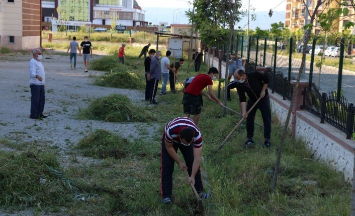 Manisa E Tipi Kapalı Ceza İnfaz Kurumunda görev yapan infaz koruma memurları da Manisa’nın Yunusemre ilçesi Merkezefendi Mesleki ve Teknik Anadolu Lisesine ait yurtlarda izolasyon sürecini geçiriyor. Cezaevlerinde fedakarca görev yapan memurlar, izolasyon sürecinde de aynı fedakarlığı göstererek örnek bir davranışa imza attı. Konakladıkları okulun bahçe düzenlemesine el atan infaz koruma memurları, gönüllü olarak bahçedeki büyüyen otları biçti. Okullar açıldığı dönemde öğrencilerin temiz bir ortamda ders işlemesi için kolları sıvayan izolasyon sürecindeki 40 memur, okulun güzel bir görünüme kavuşması için çalışmalarını sürdürüyor.