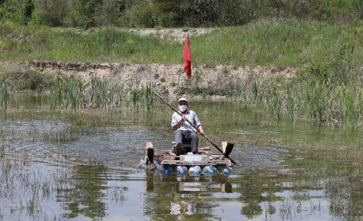 Karabük’te 65 yaşındaki Recep Özen, korona virüs (Covid-19) tedbirleri kapsamında sokağa çıkma izni verilen pazar günlerini kendi yaptığı salda geçiriyor.