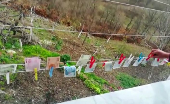 Samsun Veziköprü ilçesi Dariçaylan köyünde yaşayan Yılmaz Kanmaz, korona virüsüne karşı ilginç bir önlem aldı. Emekli maaşını bankadan çeken Yılmaz Kanmaz, eve gelince oğlunu da yanına alarak paraları yıkadı. Oğlu Ercan Kanmaz ile birlikte paraları tek tek sayarak bin 500 TL’yi sobanın üzerindeki kaynar suya atan yılmaz, bir süre yıkadı. Ardından Kanmaz’ın eşi Pembe Kanmaz ve gelini Safiye Kanmaz, ıslan paraları mandalla çamaşır ipine astı. Korona virüse Karadeniz usulü çözüm bulan Kanmaz ailesi, çektikleri videoda herkese paraları yıkamalarını tavsiye etti.