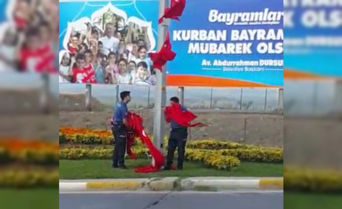 Sultangazi’de aşırı rüzgar nedeniyle elektrik direkleri arasına asılan Türk Bayrakları yere düştü. Sultangazi İlçe Emniyet Müdürlüğüne bağlı polis ekipleri, Türk Bayrağının yerde olduğunu görünce duruma müdahale ederek bayrakları toplamaya başladı. Tek bayrakları toplayan polis memurlarından birisi Türk Bayrağını öperek anlına koydu. Yerdeki bayrakları toplayan ekipler, rüzgar nedeniyle diğer bayraklar düşmesin diye direğe bağladı. Görenleri duygulandıran polislerin bayrak duyarlılığı ise çevrede bulunan bir vatandaş tarafından cep telefonuna kaydedildi.