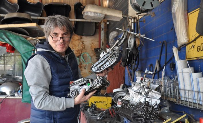 Üsküdar’da go kart işletmecisi Ali Kotil, go kart araçlarının hurdalarını sanat eserine dönüştürüyor. İşi gereği elinde kalan hurda parçalarından çeşitli objeler tasarlayan Kotil, görenleri kendisine hayran bıraktı. Hurdalardan yapılan sanat eserlerini gören müşteriler ise şaşkına dönüyor.