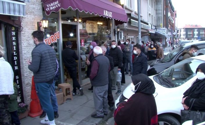 (ÖZEL) Vatandaşlar Kemerburgaz’da turşucuların önünde kuyruk oluşturdu