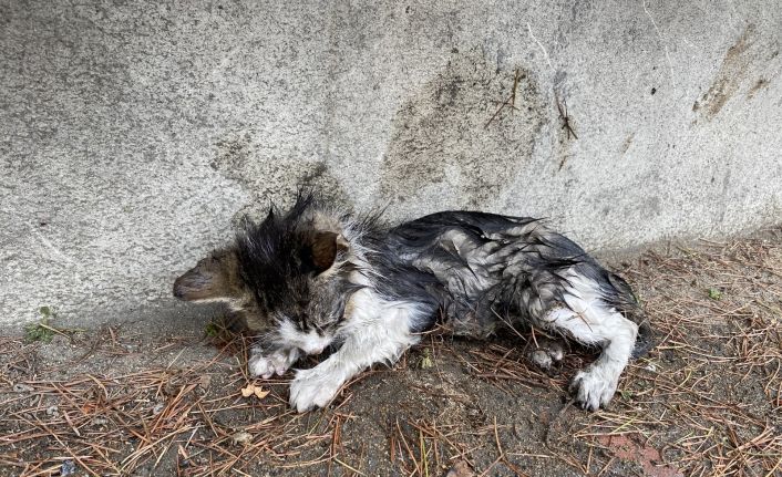 (Özel) Yağmurda sırılsıklam ıslanan yavru kediye belediye sahip çıktı