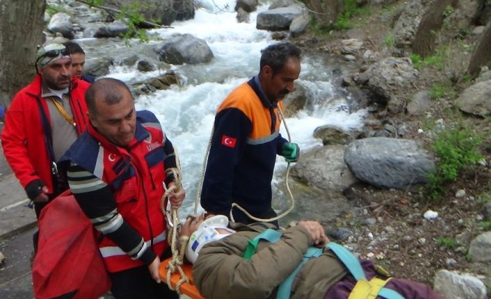 Hakkari’de pancar toplamak için çıktığı kayalıklarda ayak bileğini kıran Süleyman Kurt isimli vatandaş 6 saatlik çalışmanın ardından kurtarıldı.