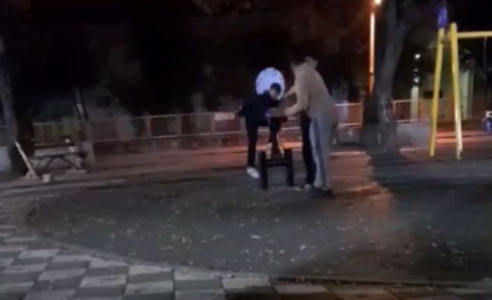 Dün İhsaniye Mahallesi’nde bulunan Milli Egemenlik Parkı’na gelen 15-16 yaşlarındaki 3 çocuk oyuncaklara zarar verdi. Parkta oturan bir vatandaş ise o anları kayda aldı. Vatandaş kamerasına yansıyan görüntülerde, çocukların tahterevalliye tekmelerle zarar verdiği anlar yer aldı. Ayrıca, görüntülerde çocuklardan birinin arkadaşına, "Sen oradan vur, ben buradan vurayım" dediği duyuldu.