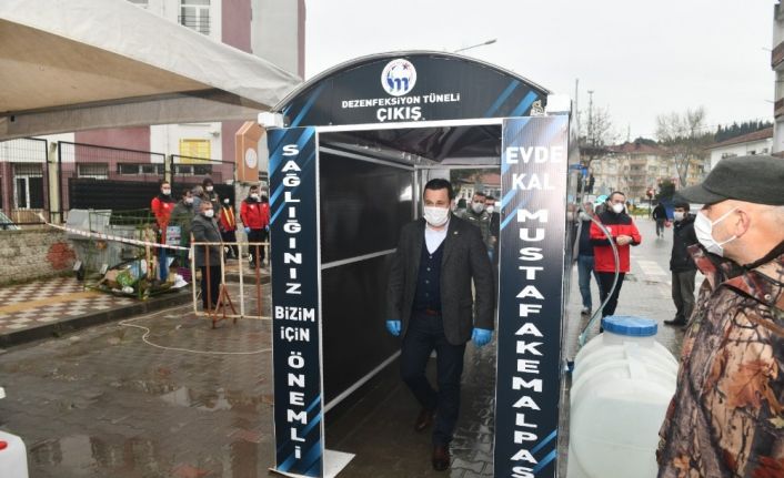 Mustafakemalpaşa Belediyesi korona virüs salgınıyla mücadele kapsamında önlemlerini arttırmaya devam ediyor. Başta pazar yerleri olmak üzere sıkı önlemler alan belediye, dezenfeksiyon tüneli ve maske dağıtımıyla insan ile virüs arasında koruma kalkanı oluyor.