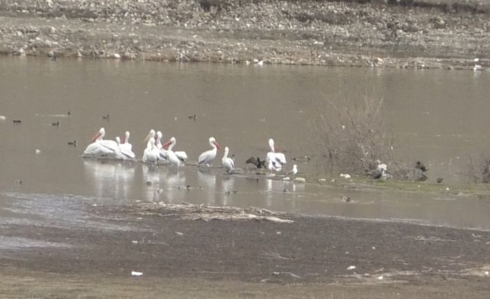 Havaların ısınmasıyla birlikte pelikanlarda yeni mekanlarına gelmeye başladı. Kars Baraj Gölü’ne gelen çok sayıda pelikan güzel görüntüler ortaya çıkardı.