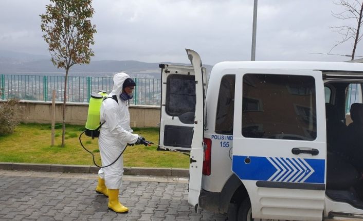 Bursa’nın Gemlik ilçesinde polis araçları korona virüsü tehlikesine karşı ilaçlanarak dezenfekte edildi.