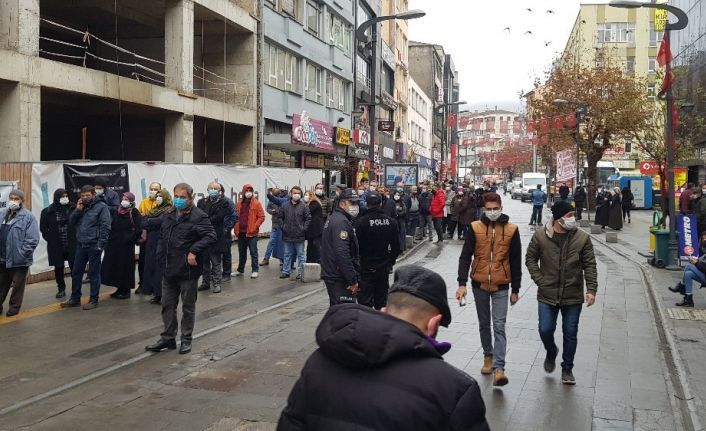 Karabük’te TOKİ tarafından yapılan ve satışa çıkacak olan evler için banka önünde uzun kuyruk oluşturan vatandaşlar, facianın eşiğinden döndü.