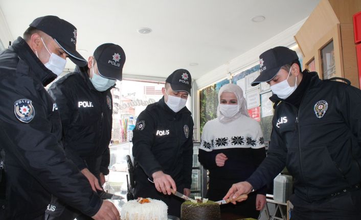 Kendileri için hazırlanan pastayı üfleyen polis ekipleri de, “Bu nazik davranışınızdan ötürü çok teşekkür ediyoruz. Ellerinize sağlık, zahmet vermişsiniz. Çok mutlu olduk, duygulandırdınız bizleri. Hayırlı işleriniz olsun” dedi.