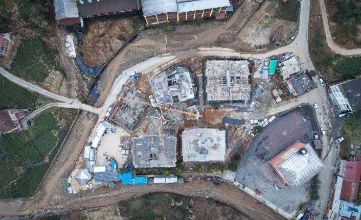 Rize’de meydana gelen doğal afetler sonrası Çayeli ilçesine bağlı Büyükköy beldesinde yapımı devam eden afet konutlarında sona yaklaşılıyor.