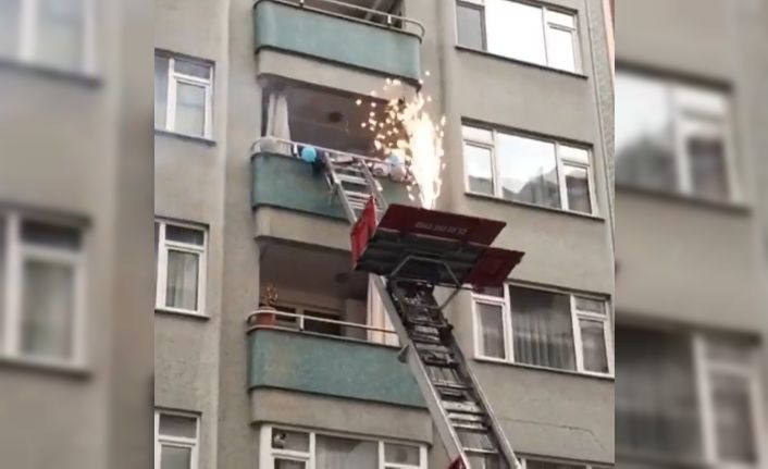 55 yaşına giren Kanat için yük asansörünün kabini maytap ve balonlarla süslendi. Kanat’ı arayarak balkona çıkmasını isteyen arkadaşları, o esnada yük asansörünü binanın 3. katına gönderdi.
