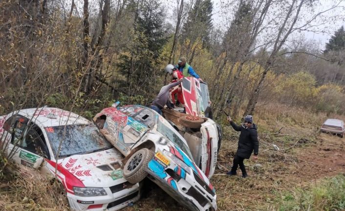 Rus rallisinde 6 araç aynı noktaya uçtu