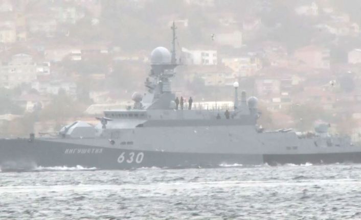 Rus Donanması’na ait 630 borda numaralı savaş gemisi “Inghusheita” İstanbul Boğazı’ndan geçti. Sahil güvenlik botunun eşlik ettiği savaş gemisi, yaklaşık 1 saat sonra Karadeniz’e açılırken güvertesinde ise askerlerin olduğu görüldü.