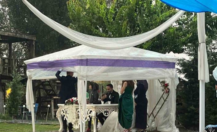 Çift; açık alanda düğün yapmak için aylar öncesinden kır bahçesi kiraladı. Düğün saatinde sahneye çıkan çift ilk danslarını yaptıktan sonra bir anda bastıran sağanaktan kurtulmak için üstü kapalı alana geçti. Yağış şiddetini gittikçe artırınca çiftin nikâhları da sağanak yağmur altında kıyıldı.