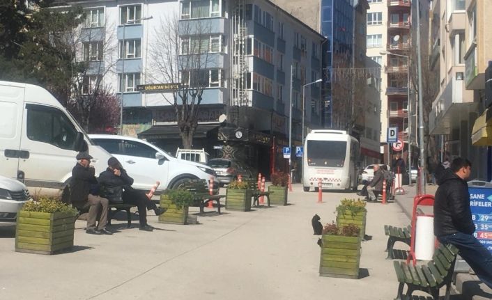 Bilecik Belediyesi kentteki bankların üzerine "Sağlığınız için lütfen oturmayın" yazısı asarken, vatandaşlar bu yazıya aldırış etmeden oturmaya devam etti.