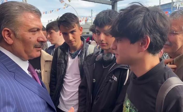 Sağlık Bakanı Fahrettin Koca, esnaf ziyareti sırasında yanına gelen gençlerle sohbet etti. Kendisiyle fotoğraf çektiren bir gencin, "Ben sizi etiketleyeceğim, siz de beni etiketleyin. Sizin takipçiniz çoktur" sözleri gülümsetti.