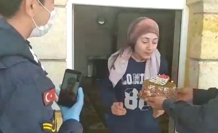 Kayseri Şehir Hastanesinde görevli sağlık çalışanı Zehra Arısüt, Nevşehir’in Derinkuyu ilçesine bağlı Özlüce köyünde yaşayan kızının doğum gününü jandarma ekipleri tarafından götürülen yaş pasta ile kutladı.